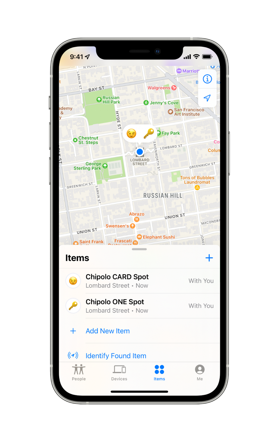 Lahko pogledaš lokacijo svoje izgubljene prtljage na zemljevidu v aplikaciji, ali pa slediš svojemu kovčku s pomočjo funkcije “Lost mode”. Prejel boš obvestilo, ko se bo lokacija tvoje prtljage posodobila s pomočjo ostalih uporabnikov iPhona. Če vključiš funkcijo »Lost Mode« in dodaš svoj elektronski naslov ali telefonsko številko, te bo tisti, ki bo našel tvoj izgubljen predmet, lahko kontaktiral